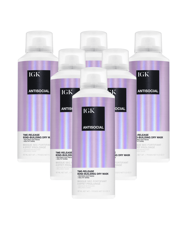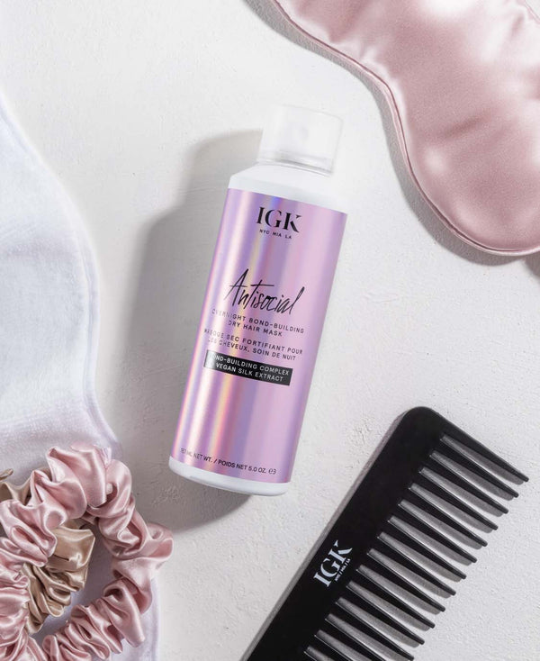 • IGK Antisocial bonds to the hair’s natural proteins inside the hair fiber, helping to strengthen it from the inside.