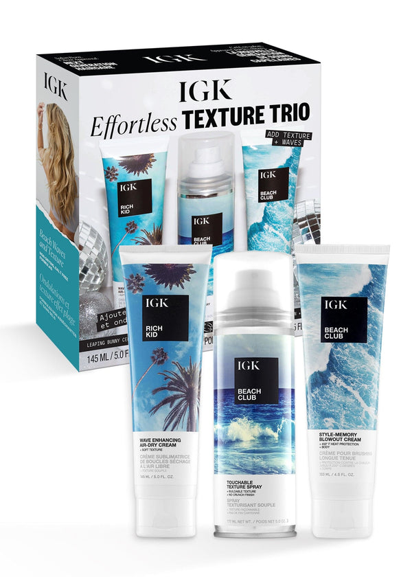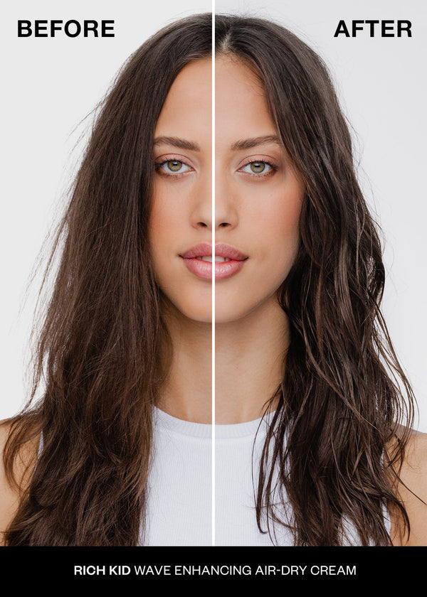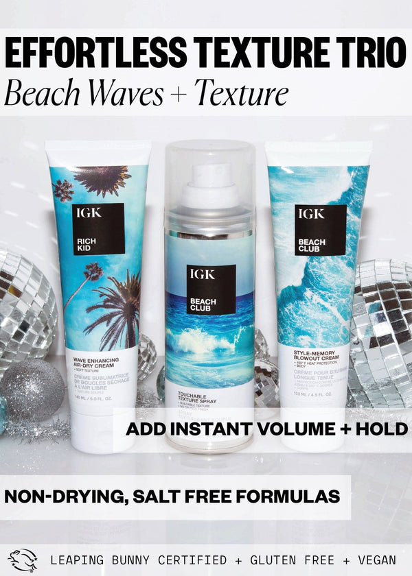 This must-have texture trio is your go-to solution for effortlessly beach waves. Begin with Beach Club Blowout Balm to protect your hair from the heat and set up buildable, voluminous bounciness. Follow with Beach Club Texture Spray to add long-lasting volume and sexy, tousled texture for effortlessly cool, beach waves. Finish with Rich Kid, to add piecey texture and shine. Its creamy gel formula has a lightweight hold that creates defined curls and waves without stiffness or frizz.
