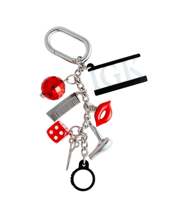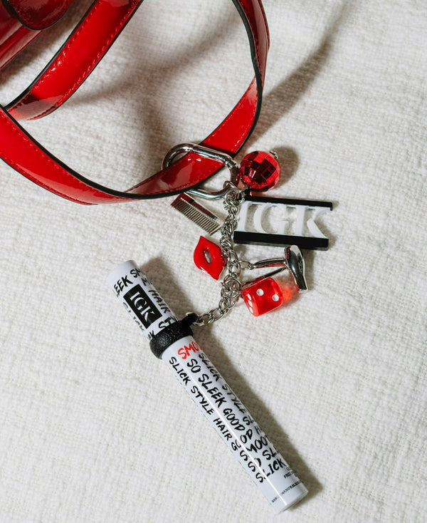 Sleek hair, anywhere. This IGK bag keychain keeps your Good Behavior Taming Wand locked and loaded wherever you are. Complete with iconic IGK coded charms and a holder for your hair taming wand, touch-ups on the go have never been easier!