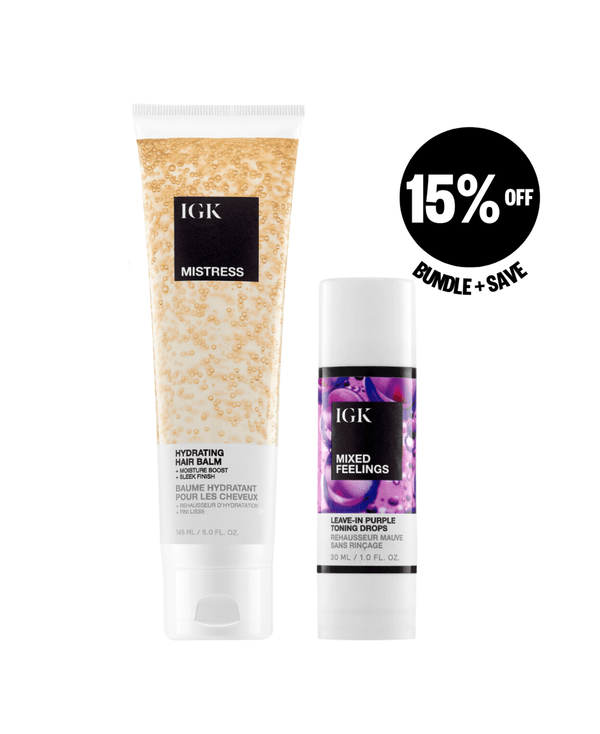 MIXED FEELINGS turns our favorite Leave-In Conditioner MISTRESS into a custom-mixed toner to banish brassiness and keep blonde, silver, or violet shades true. The concentrated purple leave-in pigment tones and cools, while prickly pear extract softens and boosts shine.