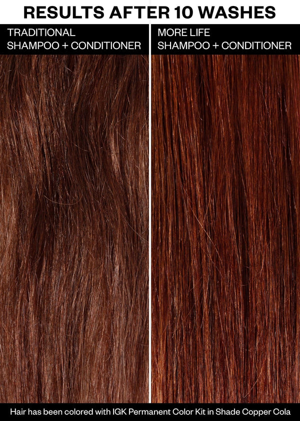 Apply to wet hair, lather, rinse. Follow with More Life Color Extending Gloss Conditioner.