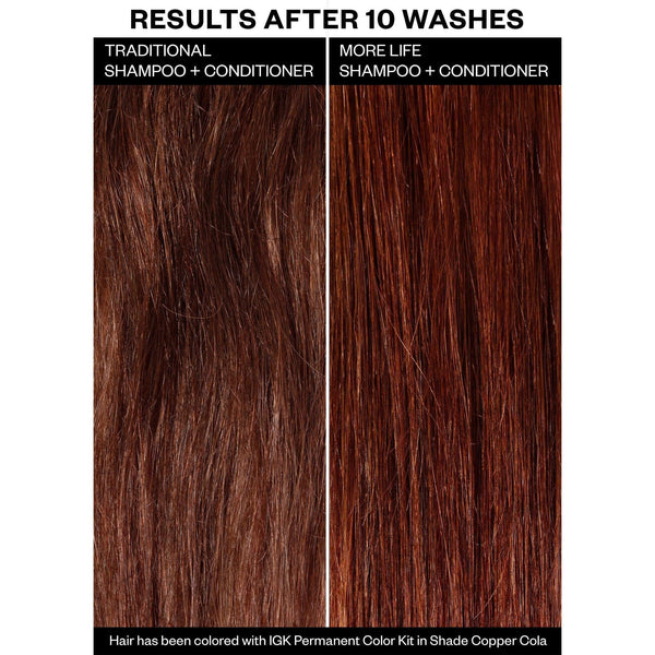 Apply to wet hair, lather, rinse. Follow with More Life Color Extending Gloss Conditioner.